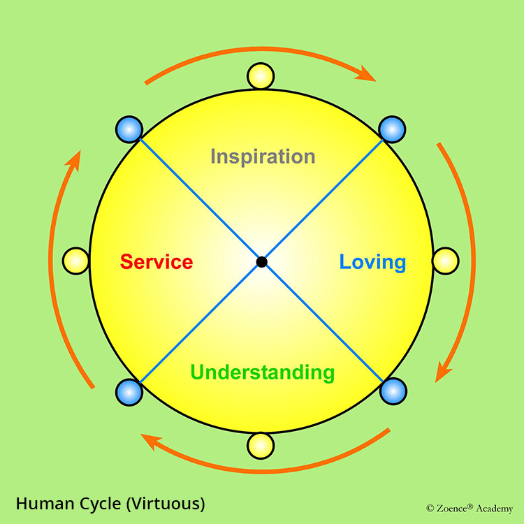 Life manifests within an endless series of time cycles. The end of one cycle is the beginning of the next, and within every cycle a process of life takes place, each with recognisable stages. These stages are four in number—a trinity of three stages issuing from an initial one. All cycles of time have these four major stages or quarters.